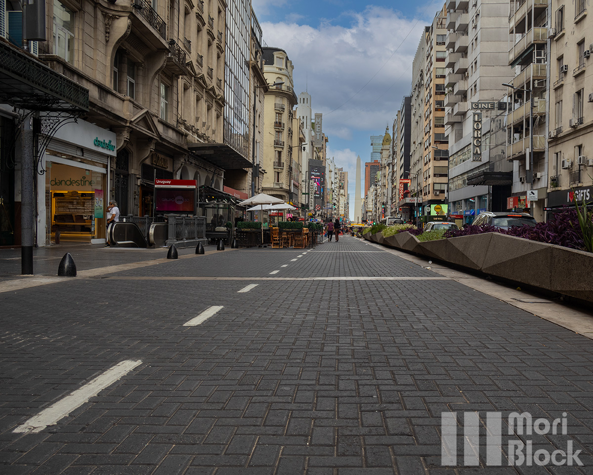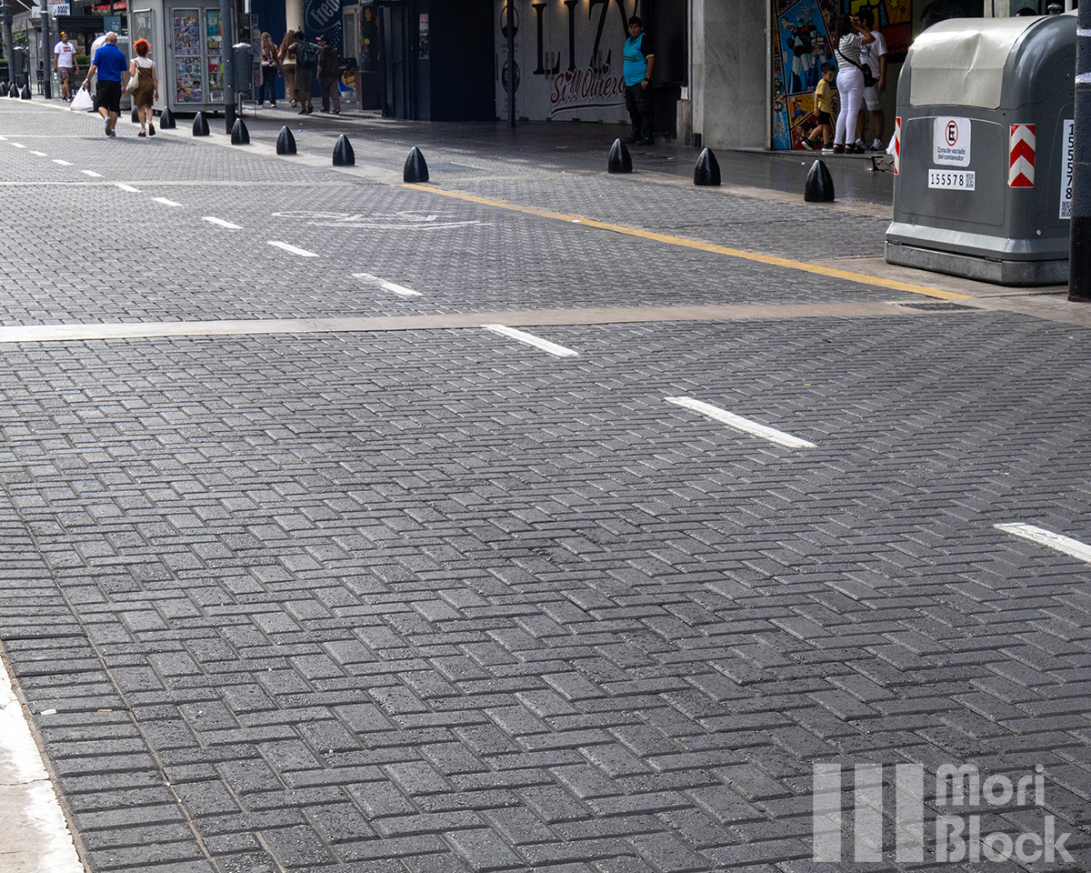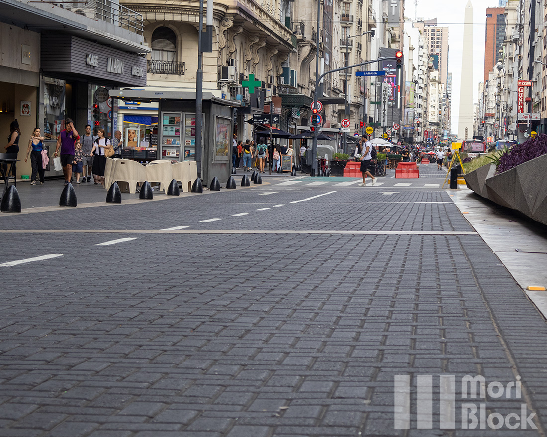 Ubicada en el centro de la Ciudad Autónoma de Buenos Aires, la calle Corrientes es un ícono cultural y comercial, en la cual se ha incluido el pavimento intertrabado en sectores peatonales, priorizando la accesibilidad y estética que complementan la vibrante vida nocturna y la rica oferta teatral y gastronómica que caracterizan esta zona.